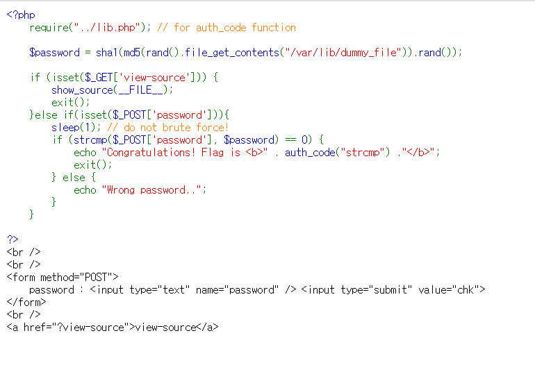 strcmp 함수를 통해 입력받은 패스워드값과 $password 값과 같을경우