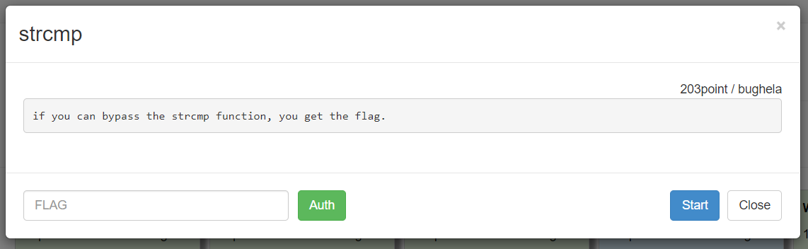 strcmp 함수를 bypass 할 수있따면 flag를 획득할 수 있다고 한다.